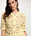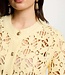 Die Morgan gehäkelte Weste 261 Moniz in Pastellgelb überzeugt durch ihr feminines und luftiges Design. Die Lochstruktur sorgt für eine elegante Optik, während der Rundhalsausschnitt und die kurzen Ärmel eine moderne Passform bieten.