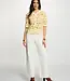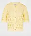 Morgan gehäkelte Weste 261 Moniz Pastellgelb mit Rundhalsausschnitt. Feminines Design mit Knopfleis..