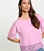 Morgan de Toi pink T-shirt with a round neckline and lace details. A feminine and stylish top with e..