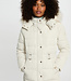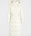 Deze lange witte donsjas van Morgan De Toi combineert warmte, comfort en elegantie in één. De jas is voorzien van een afneembare capuchon met zachte imitatiebont, een ceintuur in de taille voor een vrouwelijke pasvorm en goudkleurige drukknopen die zorgen voor een luxe uitstraling.