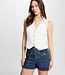 Licht getailleerd mouwloos vestje van kant met sierknopen in ivoor.