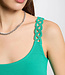 Figuurvolgende mouwloze top van Morgan in smaragdgroen met ribbelstructuur en kantdetails. Gemaakt van duurzame ECOVERO™ viscose voor stijl en comfort. Lees meer..