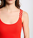 De Morgan De Toi top 251-Doubi in de kleur Orange is een opvallende en vrouwelijke mouwloze top met een zomerse uitstraling. De warme oranjetint geeft deze aangesloten top een energieke en trendy look, perfect om je outfit kleur en karakter te geven. De ribbelstructuur en de verfijnde kanten details op de schouders zorgen voor een stijlvolle afwerking.