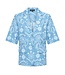 Deze lichtblauwe Mi Piace blazer met korte mouwen is een stijlvolle en frisse toevoeging aan je garderobe. Het witte, all-over patroon geeft de blazer een speelse, zomerse uitstraling, terwijl de travelstof (84% polyamide, 16% elastaan) zorgt voor ultiem draagcomfort. Deze stof is ademend, stretchy, sneldrogend en kreukvrij – ideaal voor lange dagen of reizen. De blazer heeft een klassieke reverskraag, twee knopen aan de voorzijde en klepzakken voor een nette afwerking. Perfect te combineren met een pantalon, rok of jeans voor zowel zakelijke als casual looks.