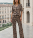 Travel Broek Flared Leopard Print Latte van Mi Piace is een stijlvolle broek met speelse leopardprin..