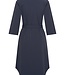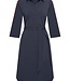 Mi Piace navy travelstof jurk met klassieke knoopsluiting, ceintuur en rood-witte zijstreep. Comfort..