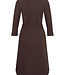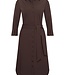Mi Piace espresso jurk in travelstof met klassieke knoopsluiting, ceintuur en 3/4 mouw met split. Co..