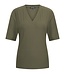Mi Piace geribbelde top in deep depth travelstof met V-hals en korte mouwen. Comfortabel, stretchy e..