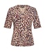 Mi Piace top in abstracte burgundy/latte print. Travelstof met stretch, V-hals en half lange mouwen...