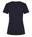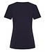 Basic T-shirt in dark blue, gemaakt van luchtige travelkwaliteit met een vrouwelijke V-hals.