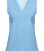 Mi Piace mouwloze top in effen lichtblauw van travelstof. V-hals, getailleerde pasvorm en kreukvrije..