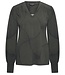 De blouse heeft een V-halslijn en lange mouwen met brede manchetten, die zorgen voor een moderne en vrouwelijke uitstraling. De subtiele plooien bij de schouders geven extra elegantie. De circle print in diepe tinten maakt de blouse veelzijdig en chic.