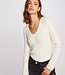 Morgan De Toi witte V-hals trui met lange mouwen en gouden knoopjes op de manchetten. Zachte, comfor..