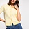Lichtgeel vest met lange mouwen en knoopsluiting, uitgevoerd in een zachte gebreide stof voor een fr..